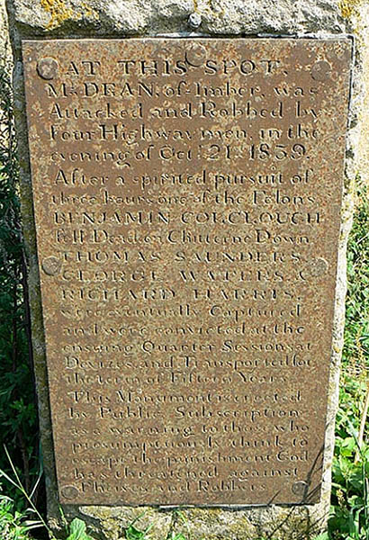Matthew Dean was making his way home to Seagrams Farm at Imber from Devizes market on 21st October 1839, when he was attacked by four men (Benjamin Colclough, Thomas Saunders, George Waters and Richard Harris) near Gore Cross Farm.